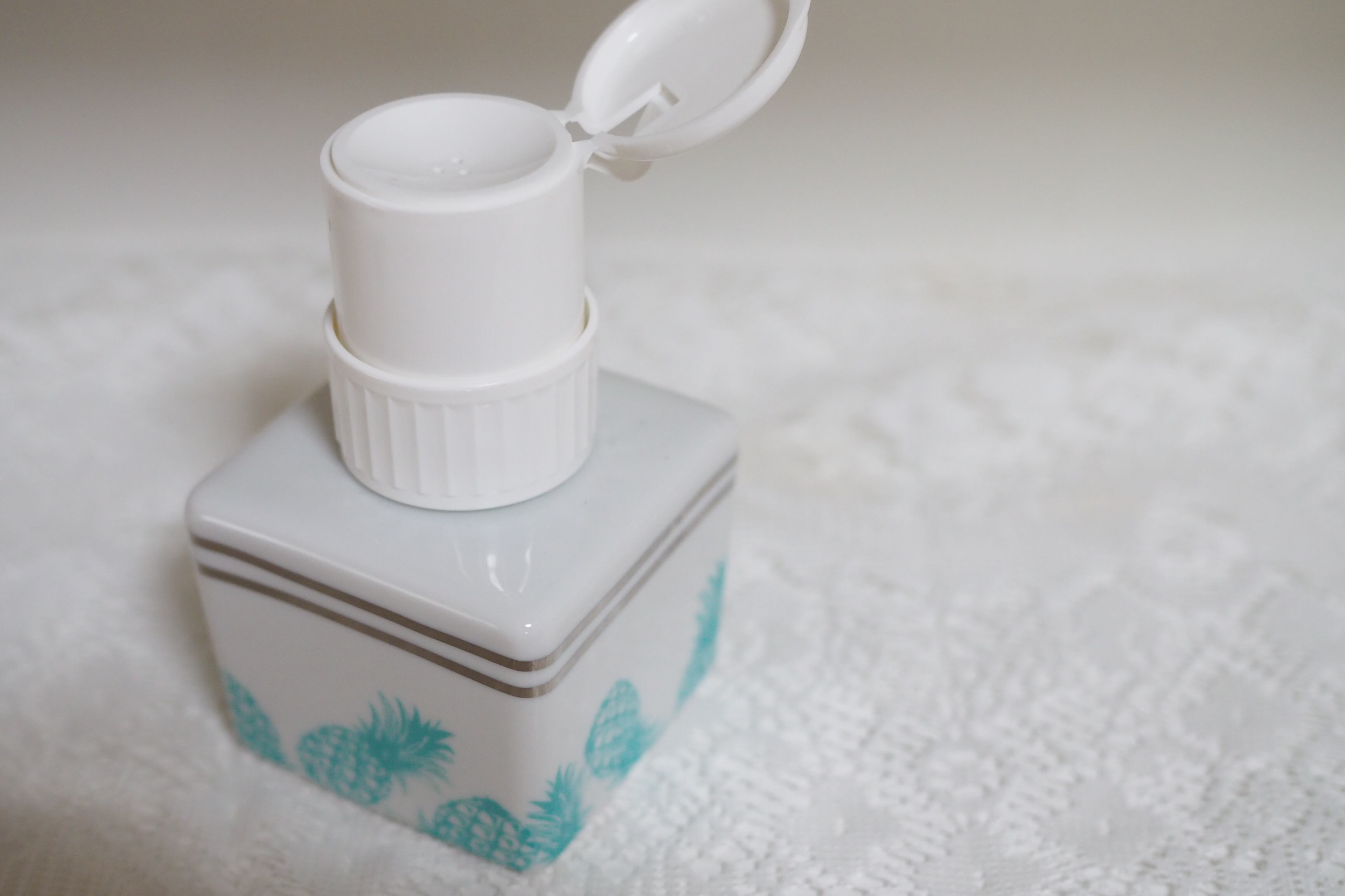 アルコール消毒液を入れて、コットンやキッチンペーパーなどを押し当てて使います
